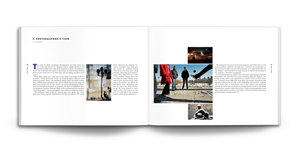 Pulitzer Prize-winners Michael Vitez and Tom Gralish spent a year visiting the Philadelphia Museum of Art to capture these stories of “Rocky runners,” who come from all over the world to run up, what is possibly America’s most famous steps—just as Sylvester Stallone did in Rocky. People make the pilgrimage to mark a new beginning, to seek inspiration, to celebrate an accomplishment, to find the perfect backdrop for romance, or simply because they love the movie. As one runner says, “It gives you the feeling that anything is possible.”